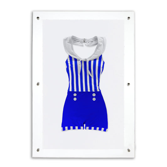 Blue Vintage Swimsuit on English Watercolor Wall Art Print