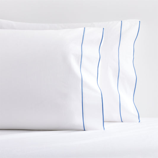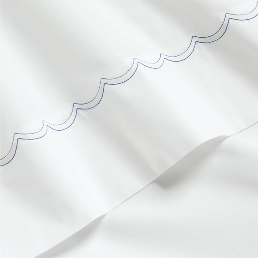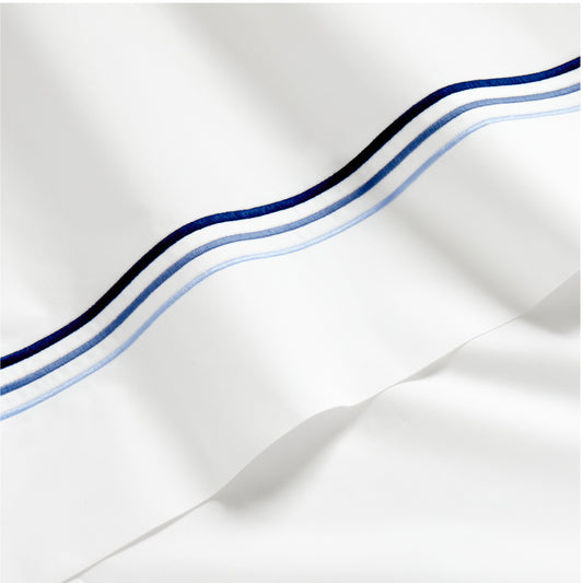 Navy Modern Embroidered Greek Key Percale Sheet Set