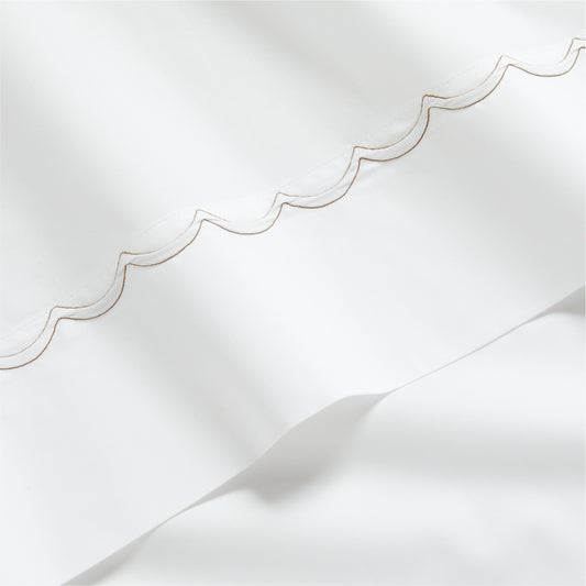 Khaki Modern Embroidered Greek Key Percale Sheet Set
