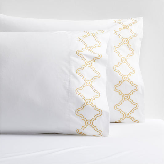 Yellow Modern Embroidered Tile Percale King Sheet Set