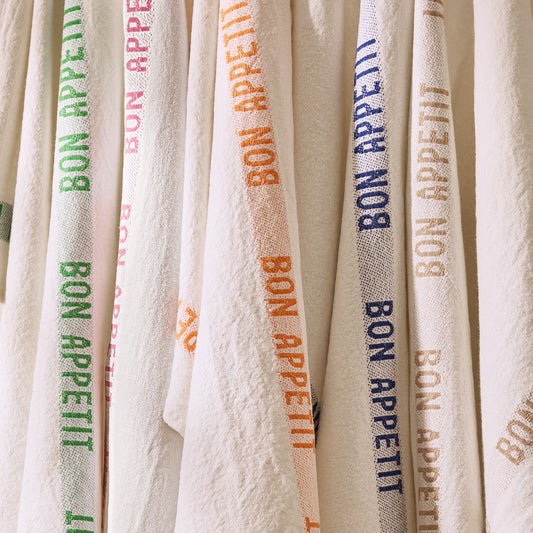 Bright Green "Bon Appetit" Linen Hand Towels, Set of 2