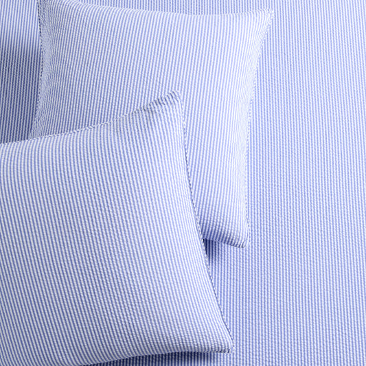 Blue Seersucker Stripe Cotton Euro Shams, Set of 2