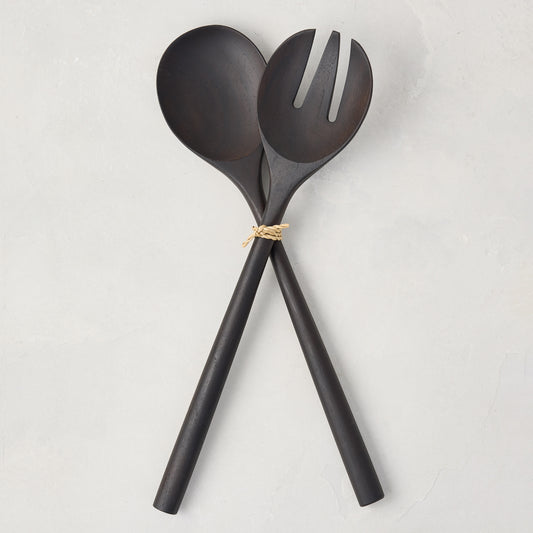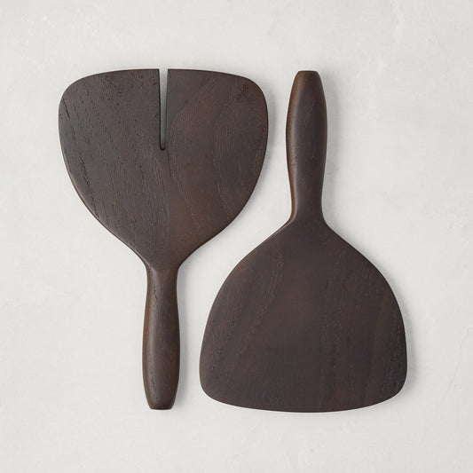 Natural Teak Wood Short-Handled 2-Piece Serving Set