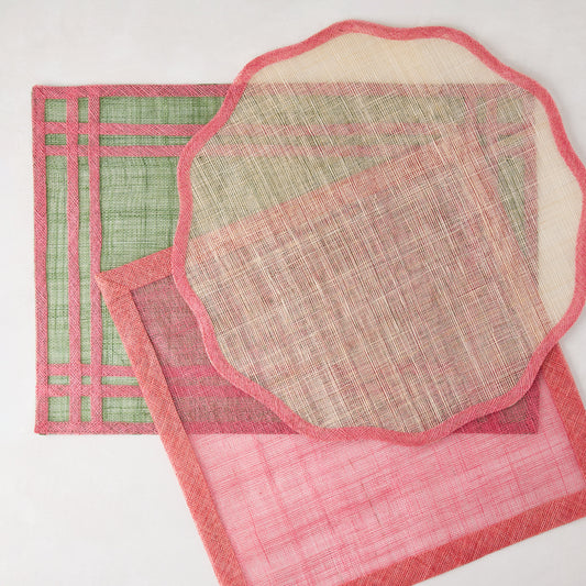 Natural Abaca Green Stripe Rectangular Placemat, Set of 4