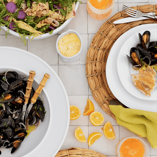 Bamboo Ceramic Serving Bowl with Natural Edge