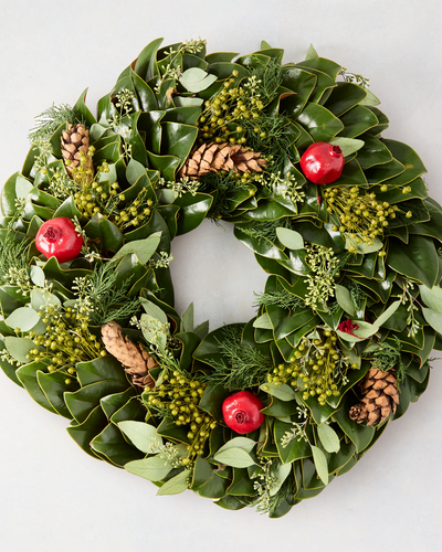 Fresh Magnolia, Spruce, and Pomegranate Holiday Garland 6"
