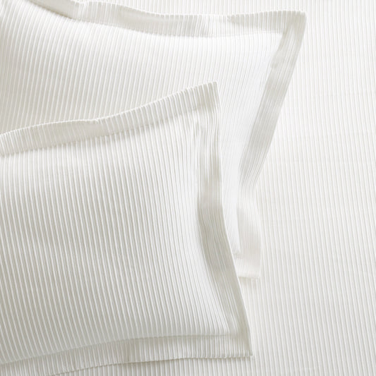 Ribbed White Cotton Matelassé Pillow Shams, set of 2