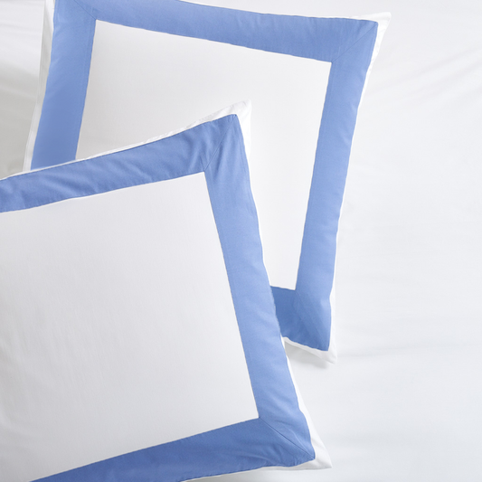 Blue Wide-Band Percale Pillow Shams, Set of 2