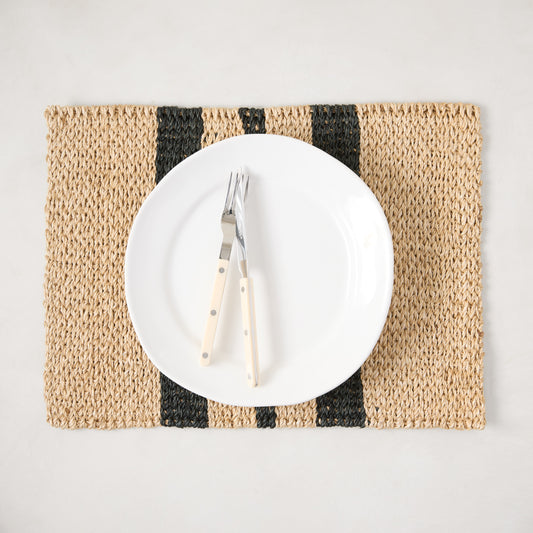 Diane Keaton + Hudson Grace Tan & Black Abaca Stripe Placemats