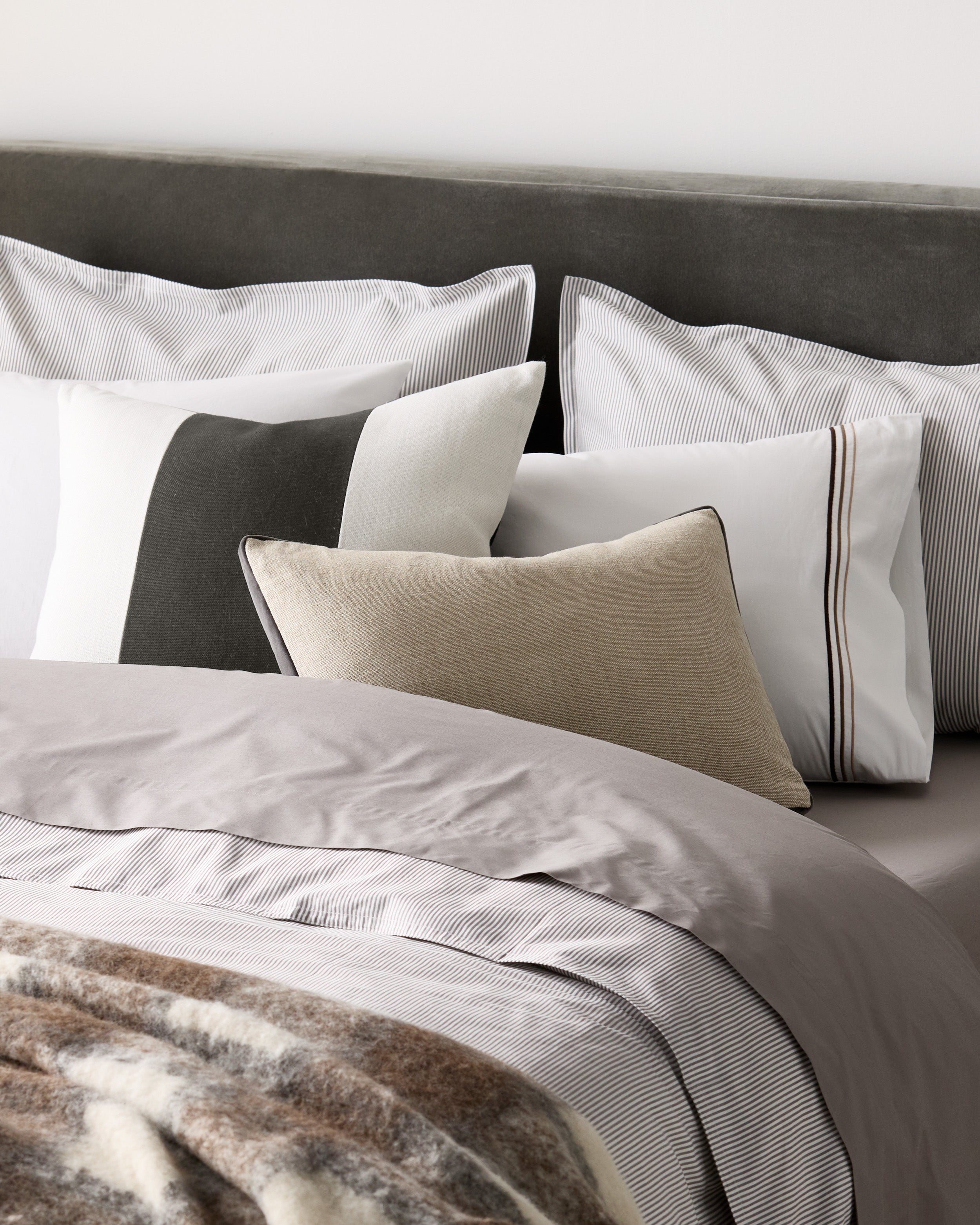 Urban Grey Wide Velvet and Linen Stripe Pillow