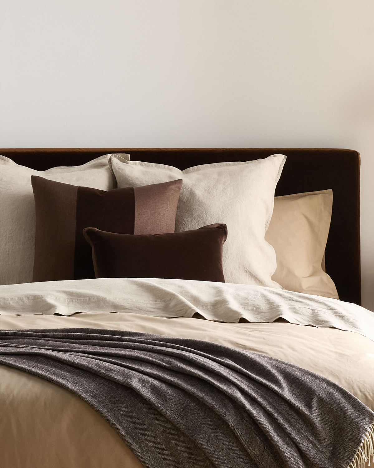 Dark Brown Tonal Reversible Velvet and Linen Lumbar Pillow