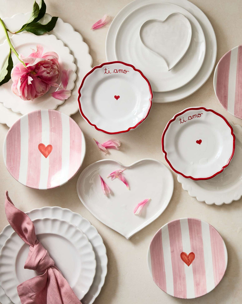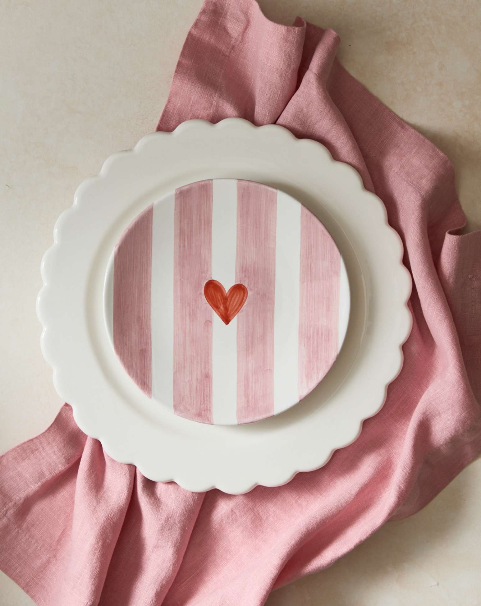 Painted Pink Stripe and Red Heart Valentine's Day Salad Plate
