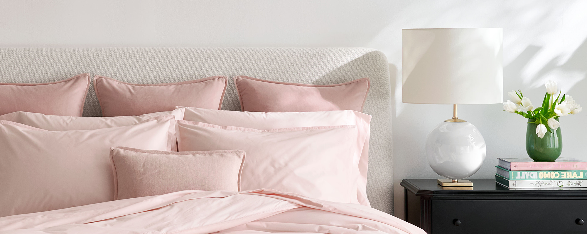Khaki Wide-Band Percale Pillow Shams, Set of 2