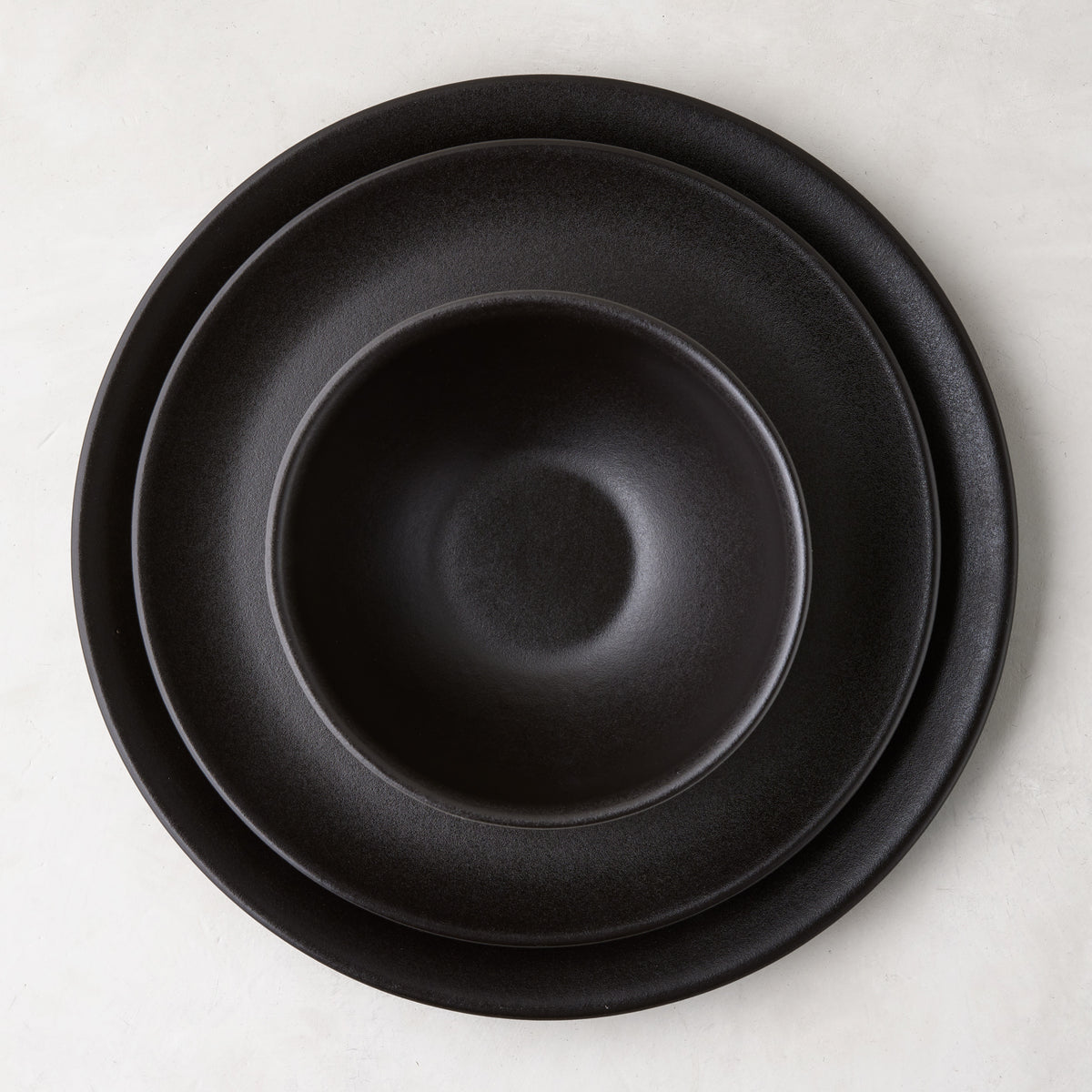 The Chalkboard Stoneware Collection brings a matte black, modern finish to the table. Crafted in Portugal from high-fired stoneware and finished in deep graphite, each piece has a smooth, sculptural feel that adds bold contrast to any setting.