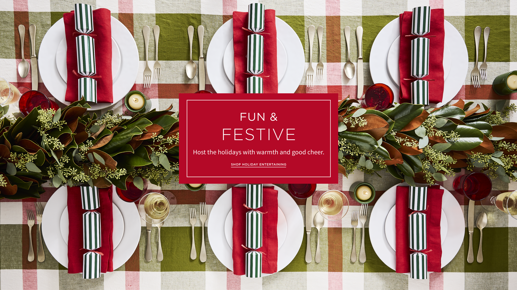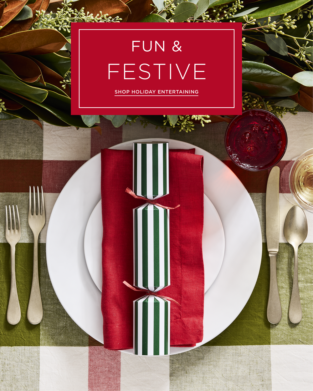 Festive dinnerware, glassware, and linens made for hosting and toasting your holiday guests.
