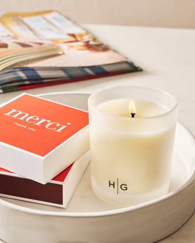A thoughtful host gift should feel personal. A favorite candle, cocktail napkins with wine, or make an appetizer and leave the platter—something you'd love to keep for yourself.