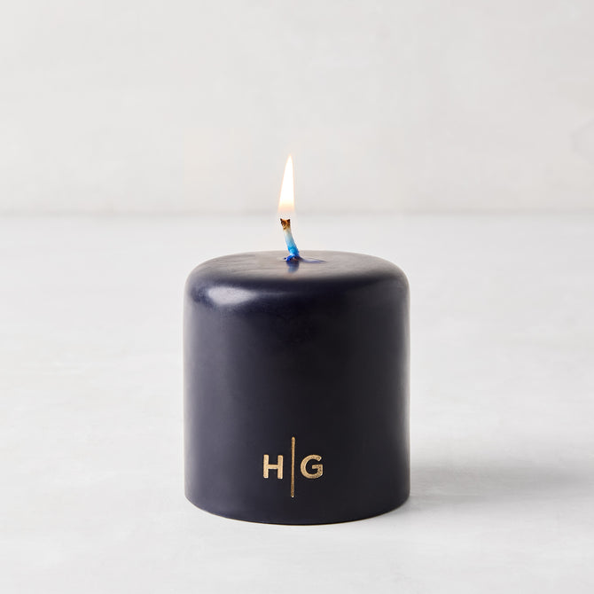 Exclusively Hudson Grace, our hand-dipped 3"x3" Blue pillar candle is made from all-natural paraffin and its rich blue is the perfect touch for summer gatherings. The pillar is unscented, making it ideal for dining, and hand embossed with a gold HG logo. The oversized cotton wick provides a generous flame.