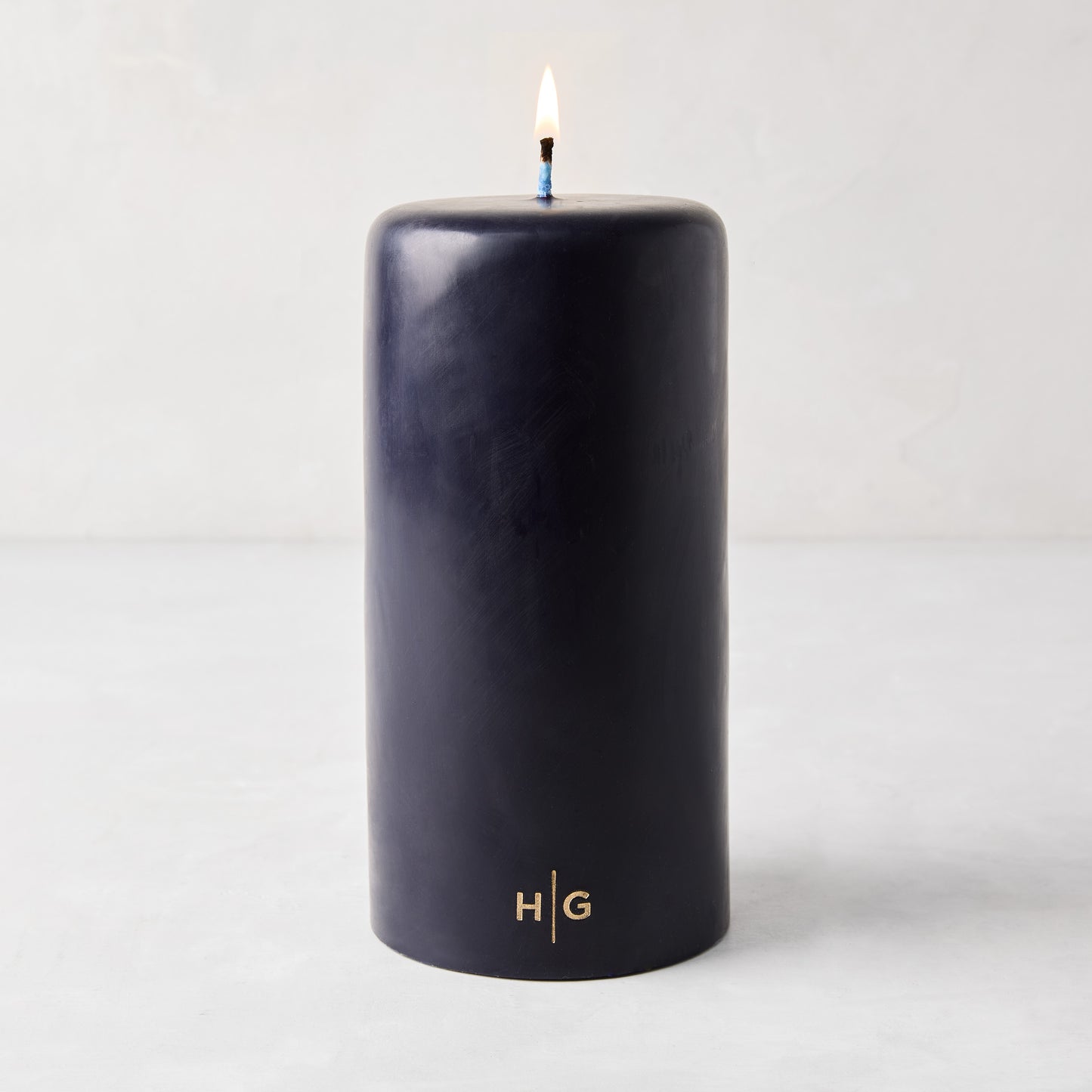 Exclusively Hudson Grace, our hand-dipped 3"x8" Blue pillar candle is made from all-natural paraffin and its rich blue is the perfect touch for summer gatherings. The pillar is unscented, making it ideal for dining, and hand embossed with a gold HG logo. The oversized cotton wick provides a generous flame.