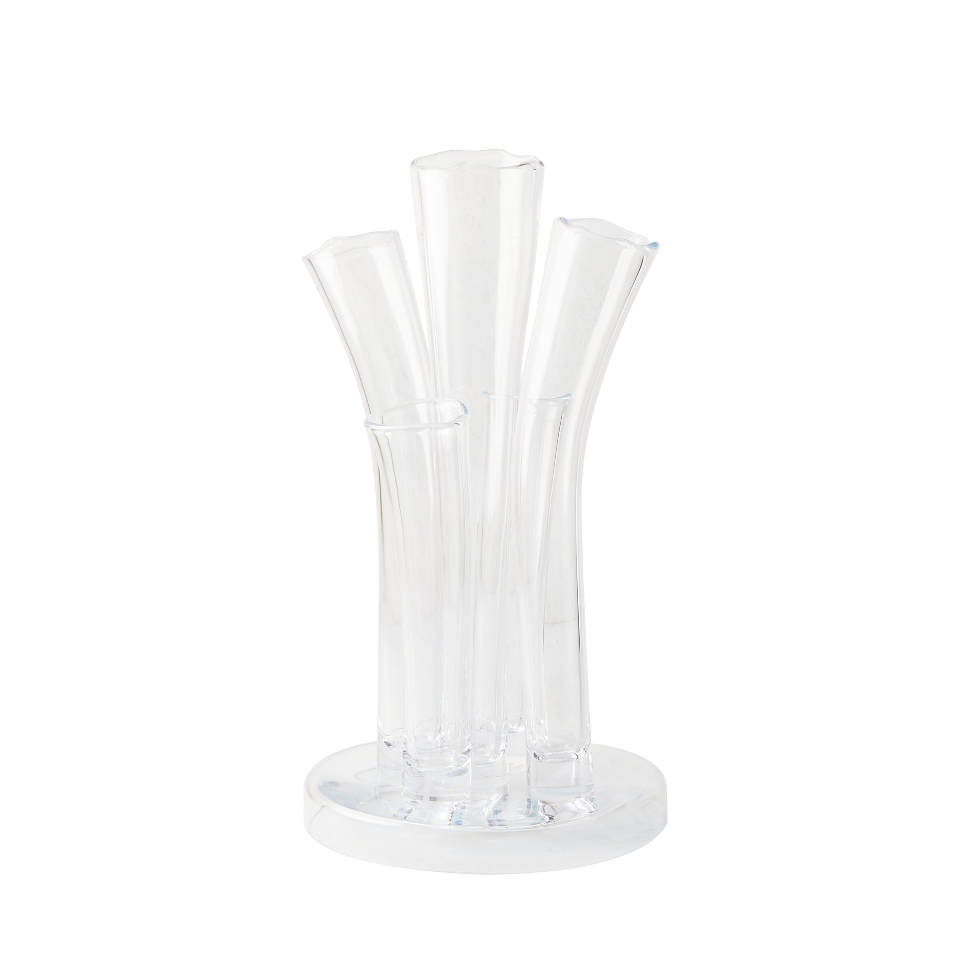 These versatile vases are made of mouth-blown glass in a factory in Belgium. These long-standing practice makes each piece unique with slight variations in height and size. When the glass is hot, each piece is cut with scissors which creates the stunning warped edge.