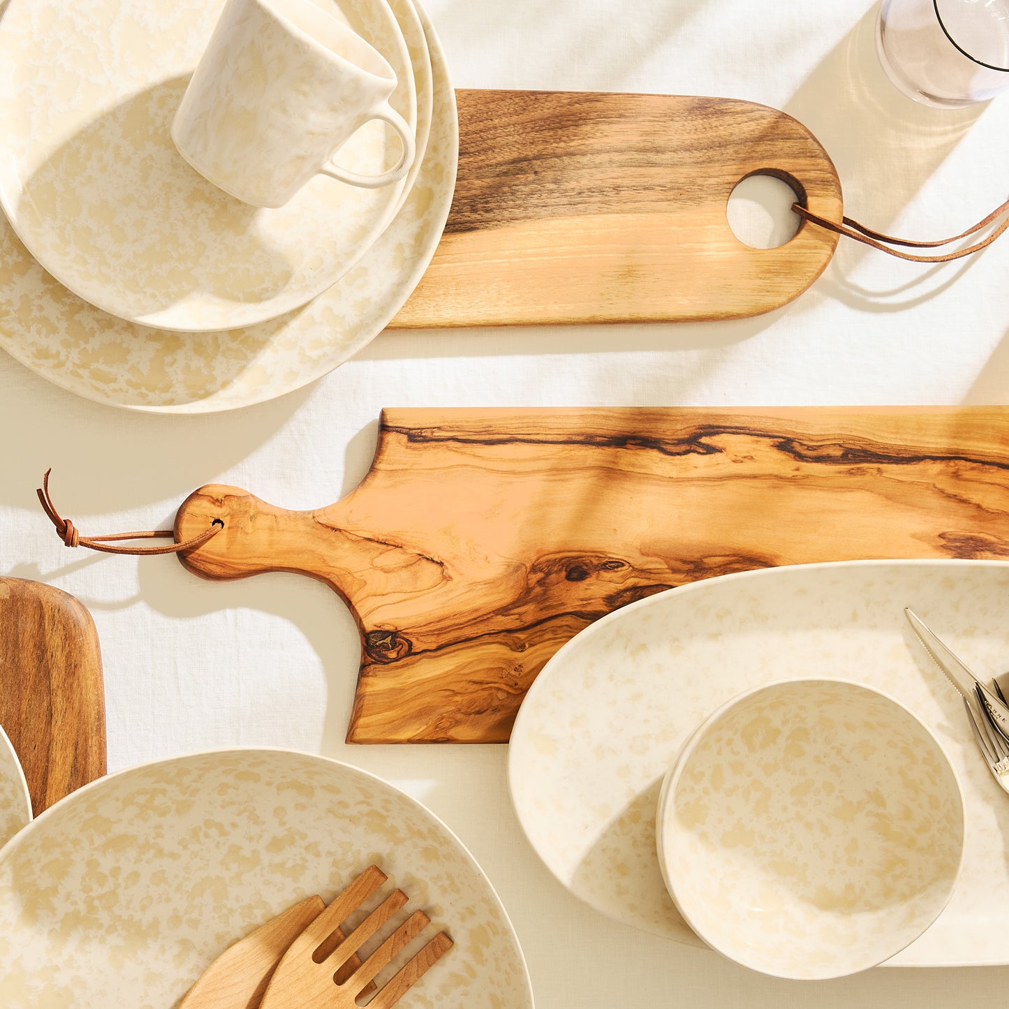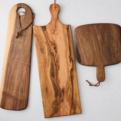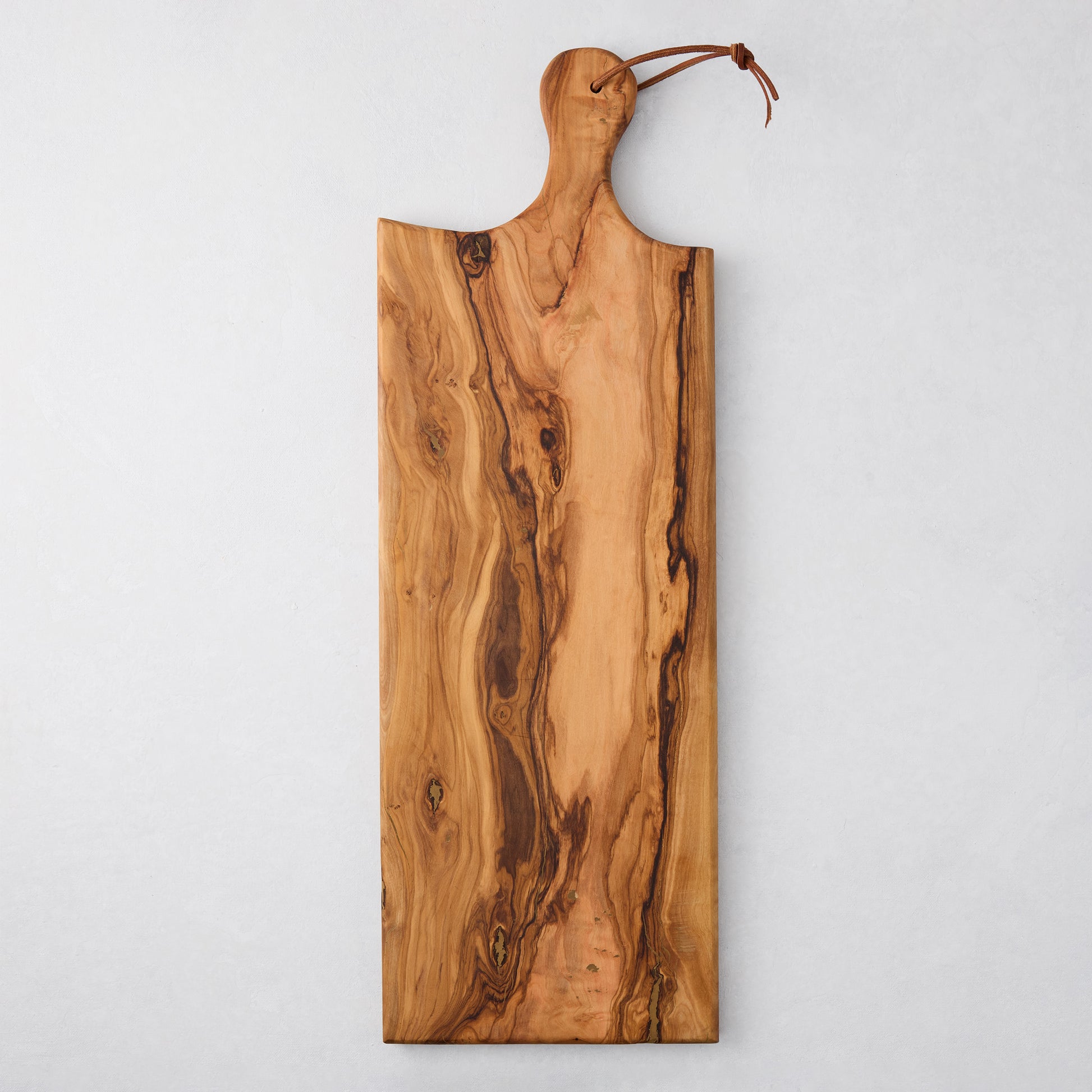 Hand cut and carved in Morocco, the Artisan Wood Rectangular Serving Board is a testament to true craftsmanship. Whether for serving food or displayed on a wall by its leather cord, this board is made to be used. Made from sustainably sourced olive wood, each board is unique in shape and finish, and is as functional as it is beautiful.