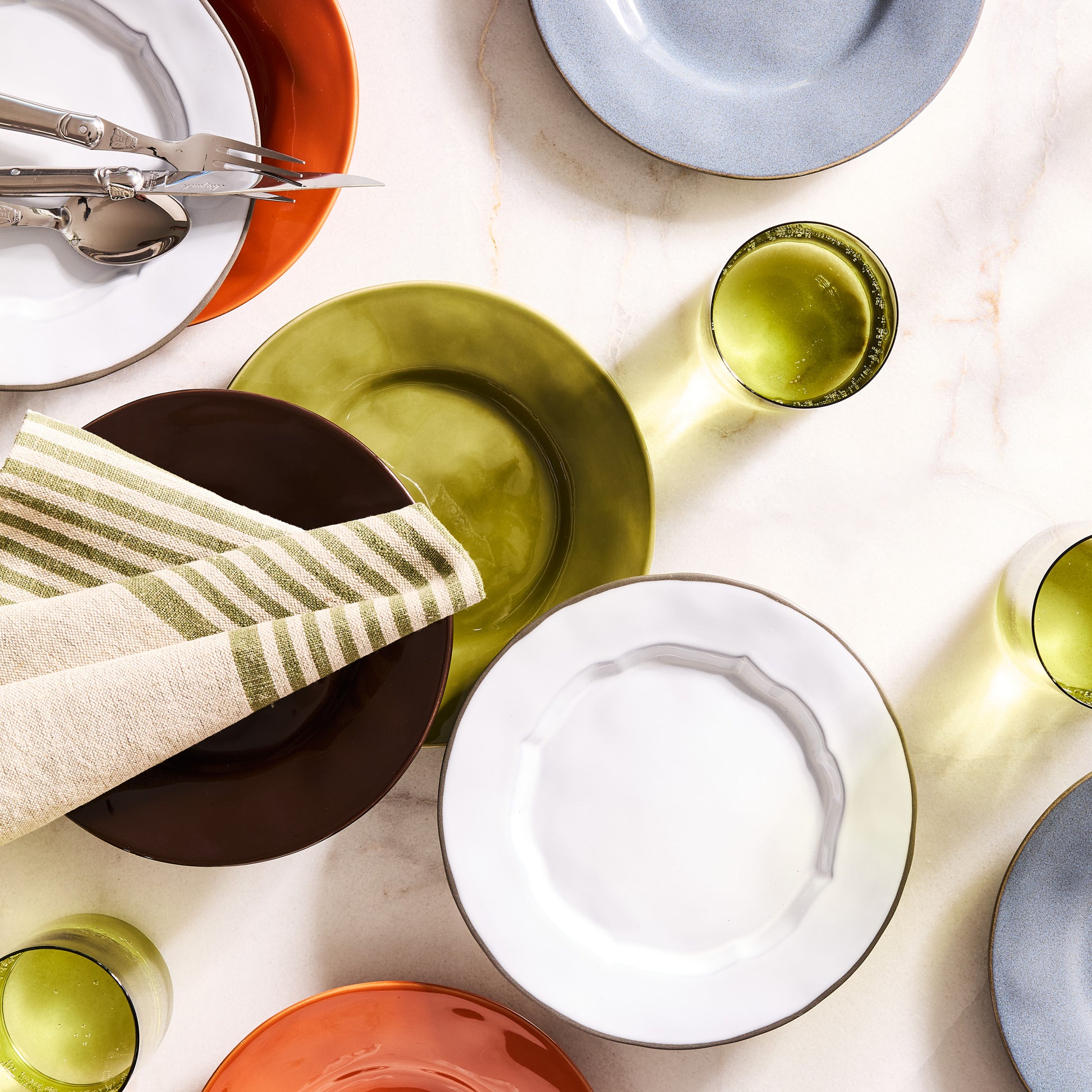 Mix and match with the Artisan White, Blue, Spice, and Green painted salad plates.