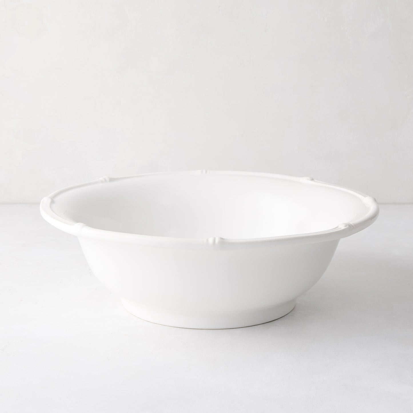 Our Bamboo Serve Bowl is inspired by vintage design and is a different take on the white dinnerware we love so much. Made in Italy, this bowl features molded bamboo detailing making it classic, yet unexpected. It can be layered easily with other HG whiteware pieces, or collect the entire collection and make every meal fun.