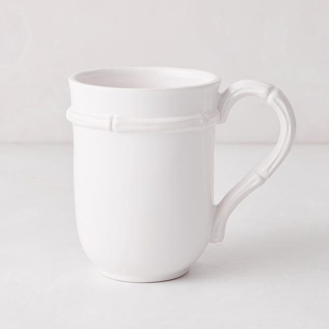 Our Bamboo Mug is inspired by vintage design and is a different take on the white dinnerware we love so much. Made in Italy, this mug features molded bamboo detailing making it classic, yet unexpected. It can be layered easily with other HG whiteware pieces, or collect the entire collection and make every meal fun.