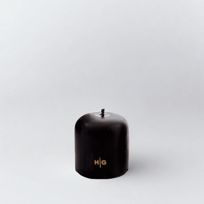 Exclusively Hudson Grace, our hand-dipped 3"x3" Black pillar candle is made from all-natural paraffin and amber tree resin. The candle has a black exterior over an amber interior. The pillar is unscented, making it ideal for dining, and hand embossed with a gold HG logo. The oversized cotton wick provides a generous flame. Always trim the wick before burning the candle.