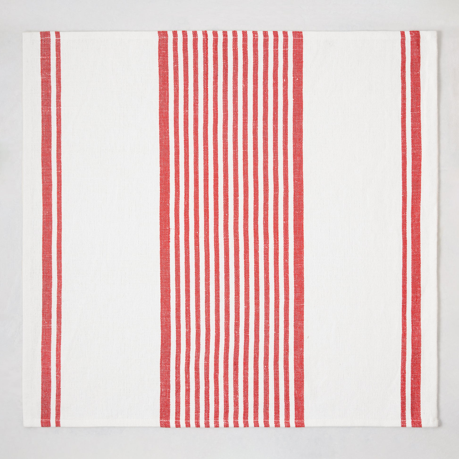 Inspired by boat interiors, the Red Boat Stripe Napkin adds texture and style to any tablescape. Woven from washed cotton and linen, the red stripes overlay an ivory base to create a subtle, festive look that is perfect for anything from casual gatherings to fancy dinner parties.