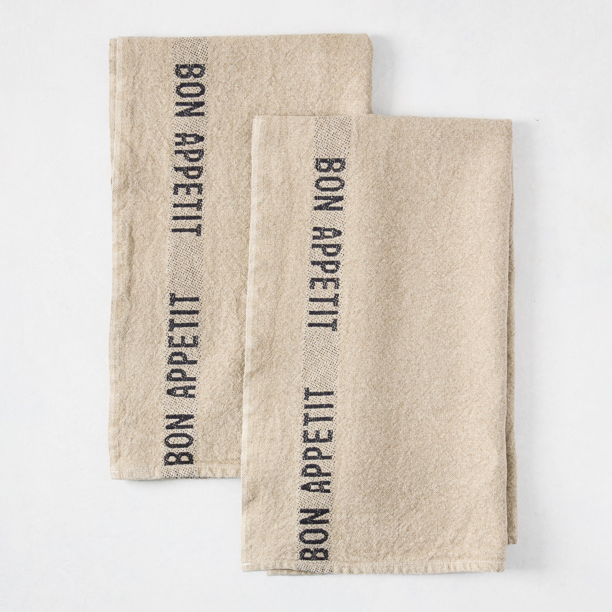 "Bon Appetit" Khaki Linen Hand Towels, Set of 2