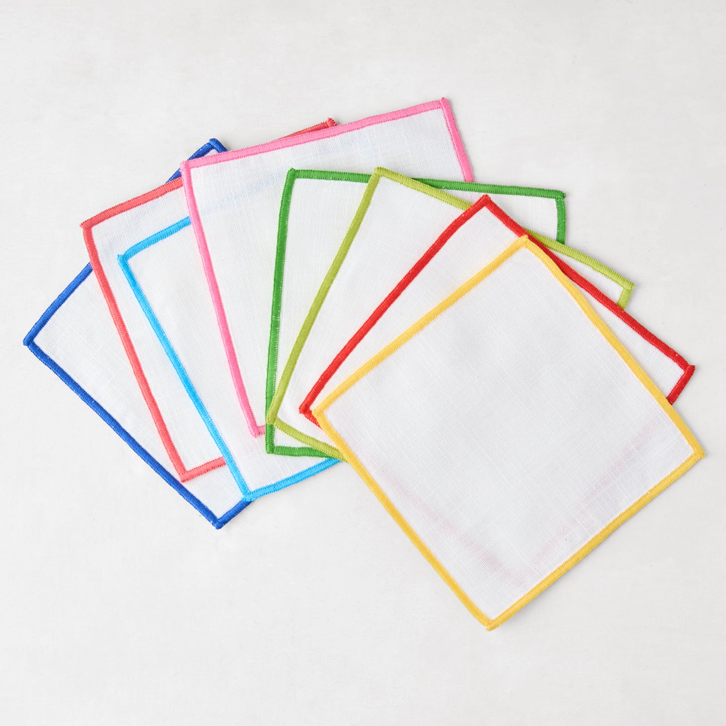 These cotton coasters are fun way to protect your home while also providing guests with an easy way to distinguish their drinks. Made from woven cotton with embroidered edges, these coasters are machine washable and extra decor for your bar.