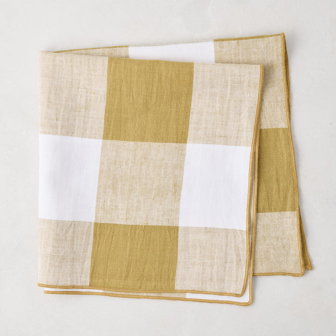 Woven from 100% natural linen, these Goldenrod Buffalo Check Linen Napkins bring a warm, welcome touch to any table setting. The timeless buffalo check pattern seamlessly complements any dinnerware in a gold yellow, creating a cozy and inviting atmosphere.