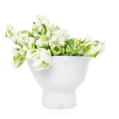We cannot get enough of this beloved, handmade Peruvian ceramic Pedestal Bowl 5148 by designer Monica Porter. An organic-shaped bowl with endless uses — from displaying fruit to housing an orchid. The creamy white glazed pieces complement our signature serveware and dinnerware.
