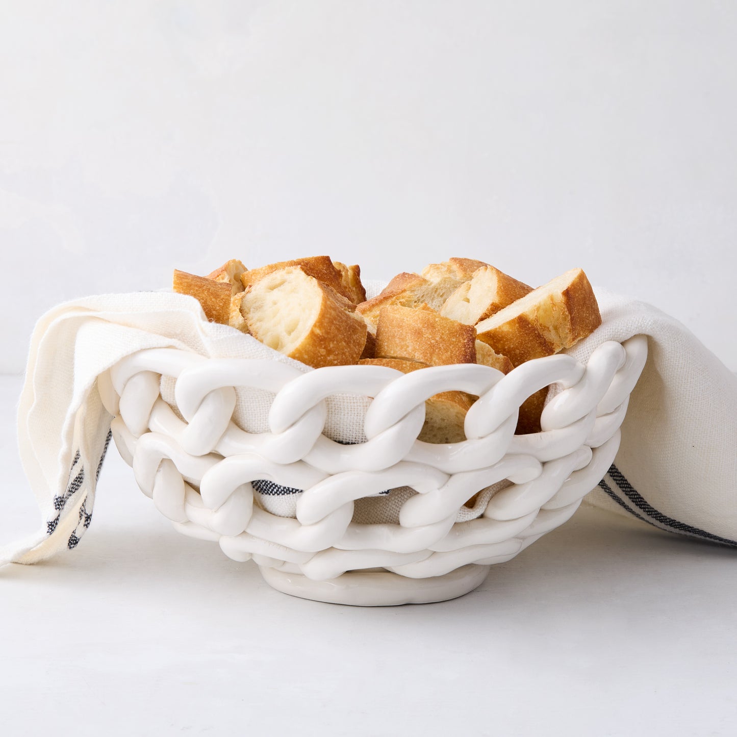Take your bread from oven to table with the Ceramic Woven Bread Bowl. Made exclusively for Hudson Grace from hand-woven ceramic, this bowl is perfect for warming bread before serving it at the table. Made to be placed directly in the oven, this bowl is not only practical but also a beautiful piece for any tablescape.