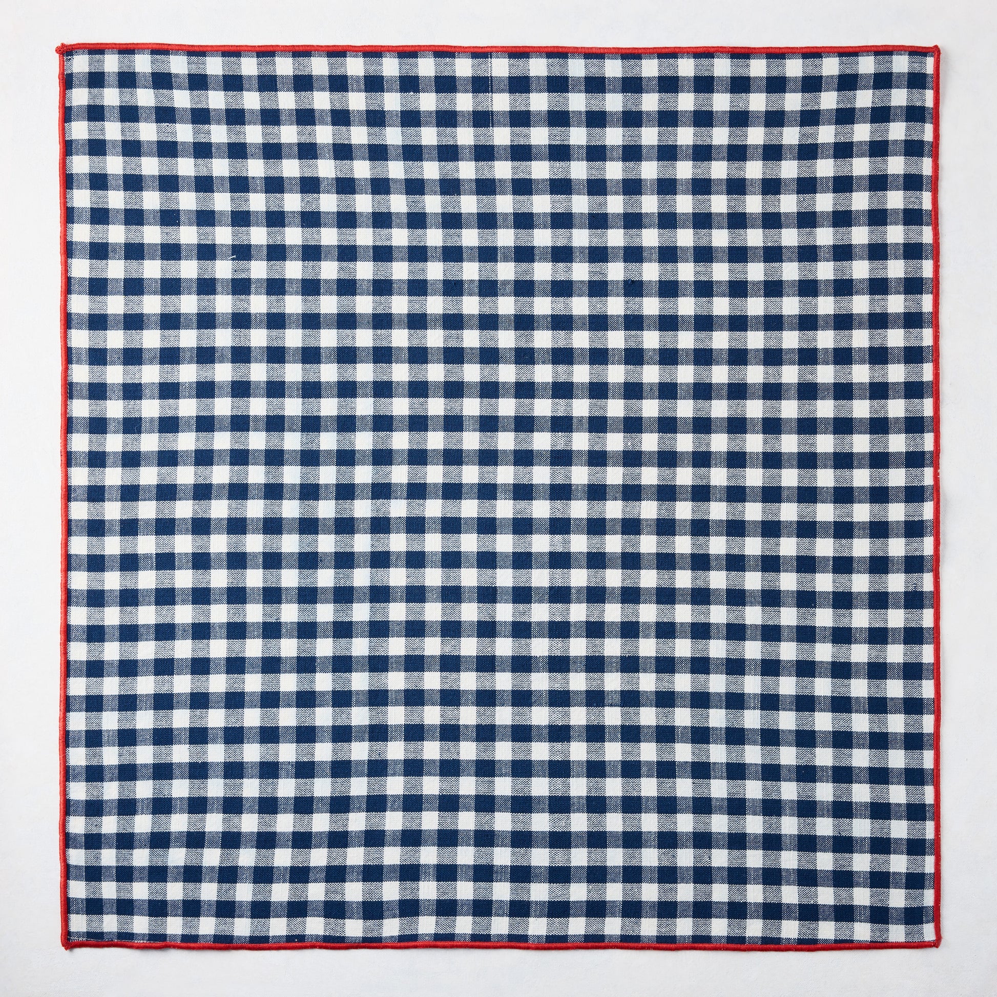 A classic gingham made modern. Woven from 100% cotton, the Chatham Navy Blue Gingham Napkin is the perfect preppy addition to any table. The navy blue and white gingham is perfectly contrasted by its embroidered red trim, adding a slight modern take that will elevate any look.