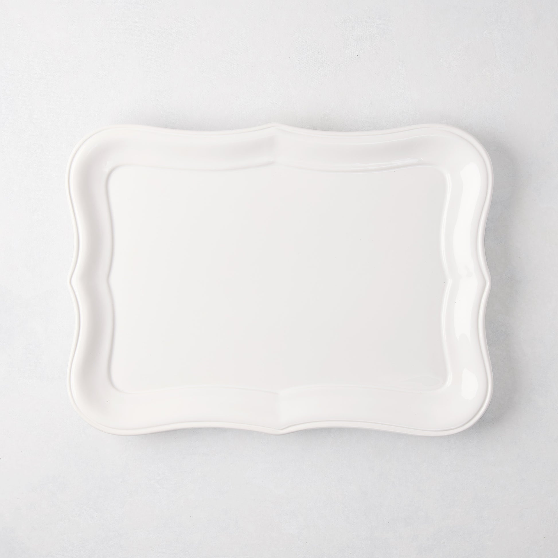 Handmade in Italy, the Medium Colette Ceramic Platter mixes elegant design with a modern edge. With a subtle scalloped edge, this platter embraces the refined feeling of vintage platters with our signature Hudson Grace white glaze. Available in three sizes that stack perfectly, this platter is perfect on its own or in a set.