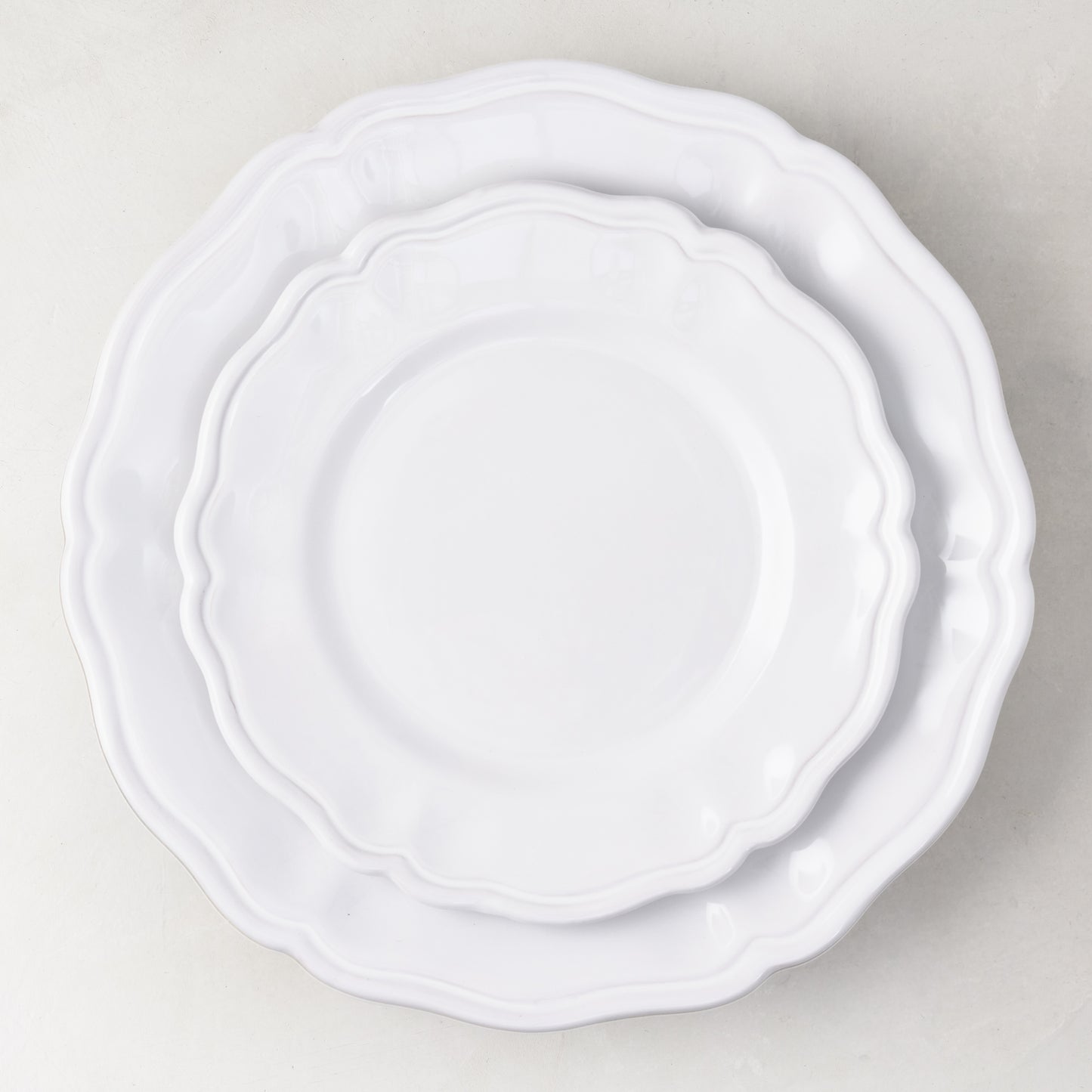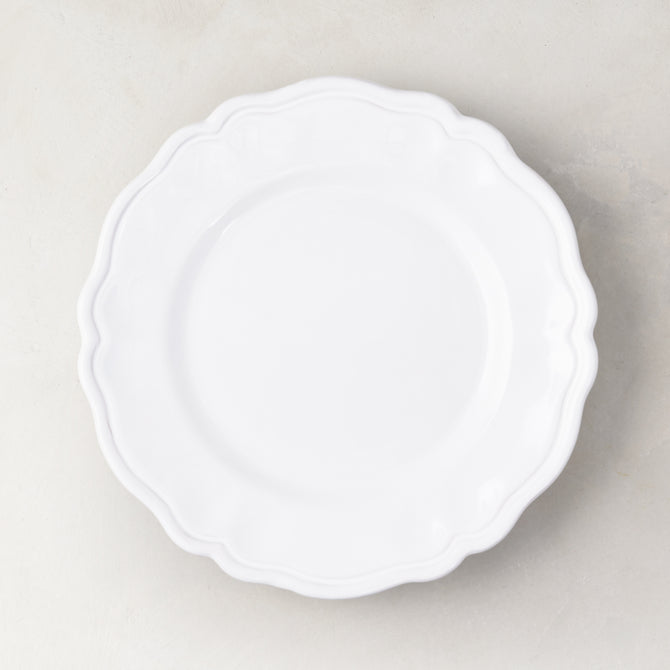 Lean into color or go with classic white with the Deruta Dinnerware collection. Coming in a stunning color range of Yellow, Pink, Green, and White - these collections provide a beautiful color pop and a subtle scallop detail. The Deruta White Painted Ceramic Salad Plate is the perfect addition to your table setting, whether it be a simple breakfast with your family, or a beautiful dinner party.