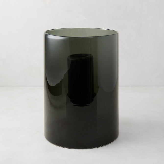 Add dramatic flair with the medium Diane Keaton x Hudson Grace Smoke Grey Glass Hurricane. Handcrafted in Poland, this oversized, smoky grey glass vessel is hand-blown, giving each piece character.