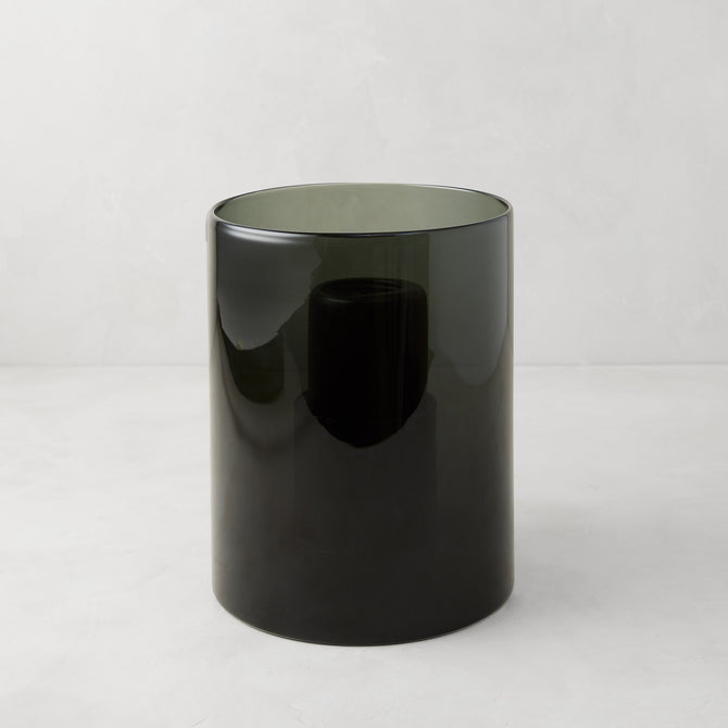 Add dramatic flair with the Small Grey Smoke Glass Hurricane. Handcrafted in Poland, this oversized, smoky grey glass vessel is hand-blown, giving each piece character.