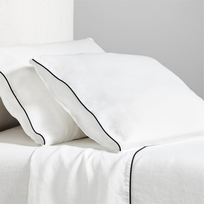 Diane Keaton + Hudson Washed Linen Sheet Set with Black Piping