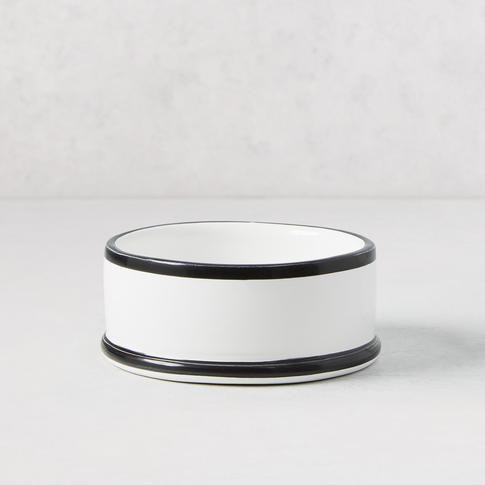 Bring a touch of modern to your bar with the Black and White Dipped Wine Coaster. Handcrafted in Italy, and modeled after an item found in Diane's home, this coaster is glazed in white and has hand-painted black lines that add dimension and style. This coaster can fit a standard bottle of wine.