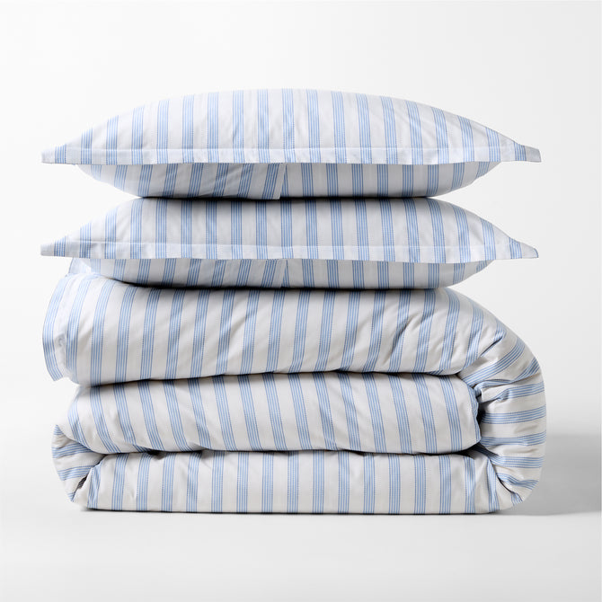 Dobby Blue Stripe Cotton Duvet Set - Queen