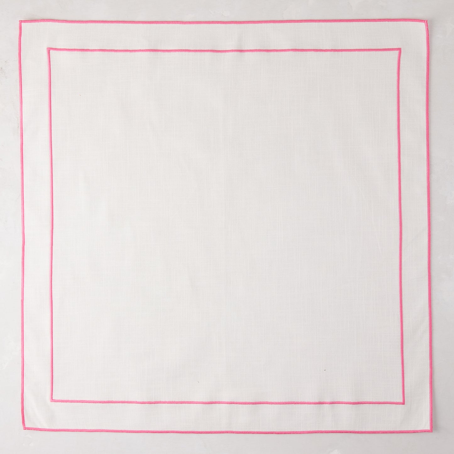 Bring a pop of color to the simplicity of a white napkin with the Double Line Embroidered Cotton Napkin in Pink. With two lines of colorful embroidery, this napkin is the perfect way to add some style to any table.