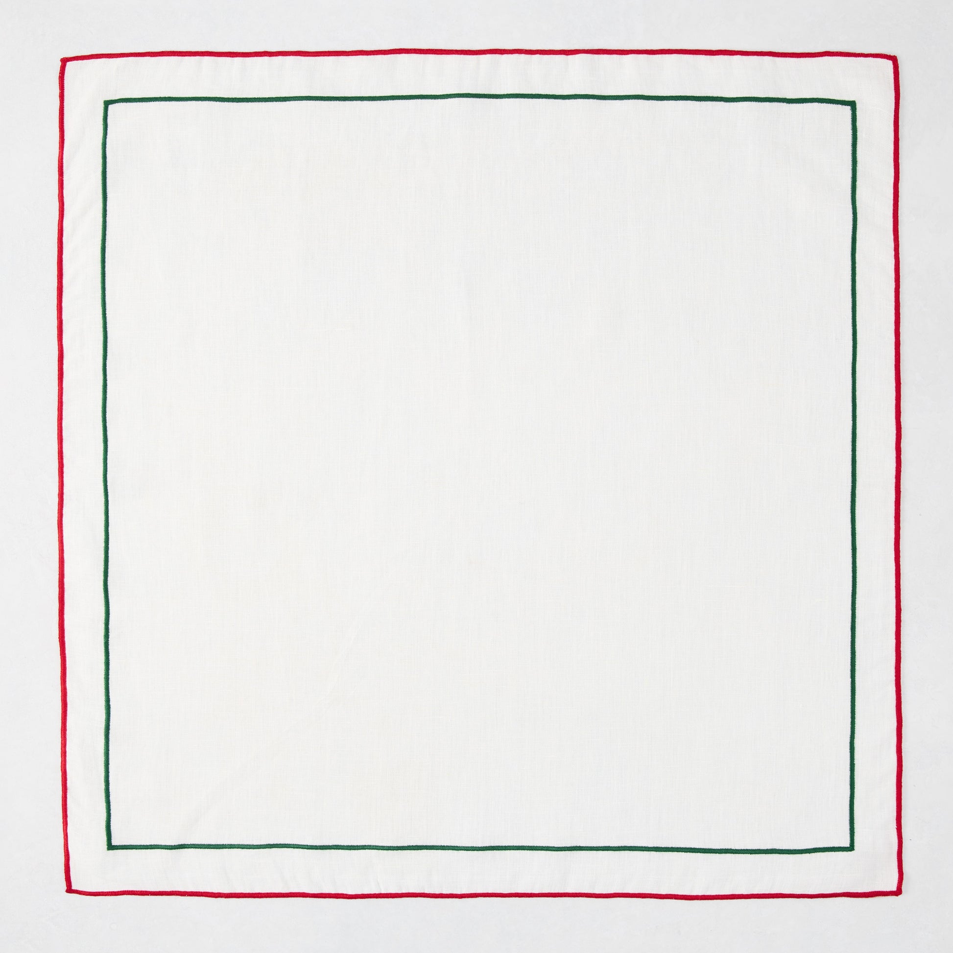 Bring a pop of festive color to the simplicity of a white napkin with the Red and Green Double Line Embroidered Christmas Cotton Napkin. With two lines of colorful embroidery, this napkin is the perfect way to add some style and holiday to any table.