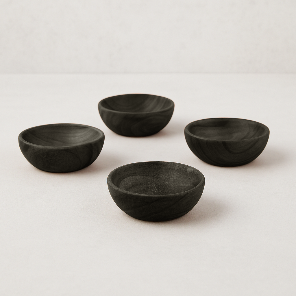 Ebony Teak Wood Pinch Bowls, Set of 4