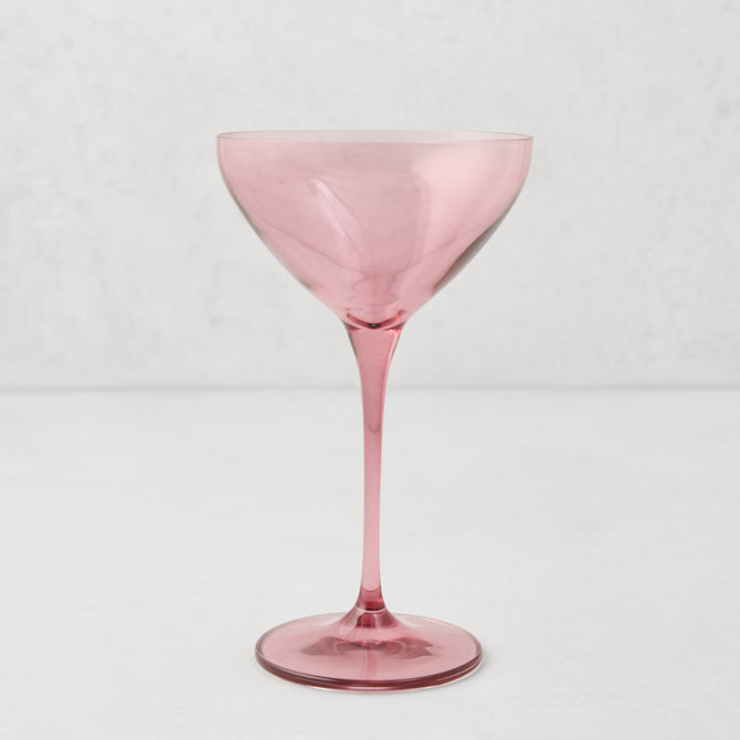 Reimagine your summer cocktails with the Estelle Colored Glass Martini Glass in Rose. Hand-blown in Poland, each glass is perfectly sized and shaped, creating a stunning jewel-toned accent for your barware collection.