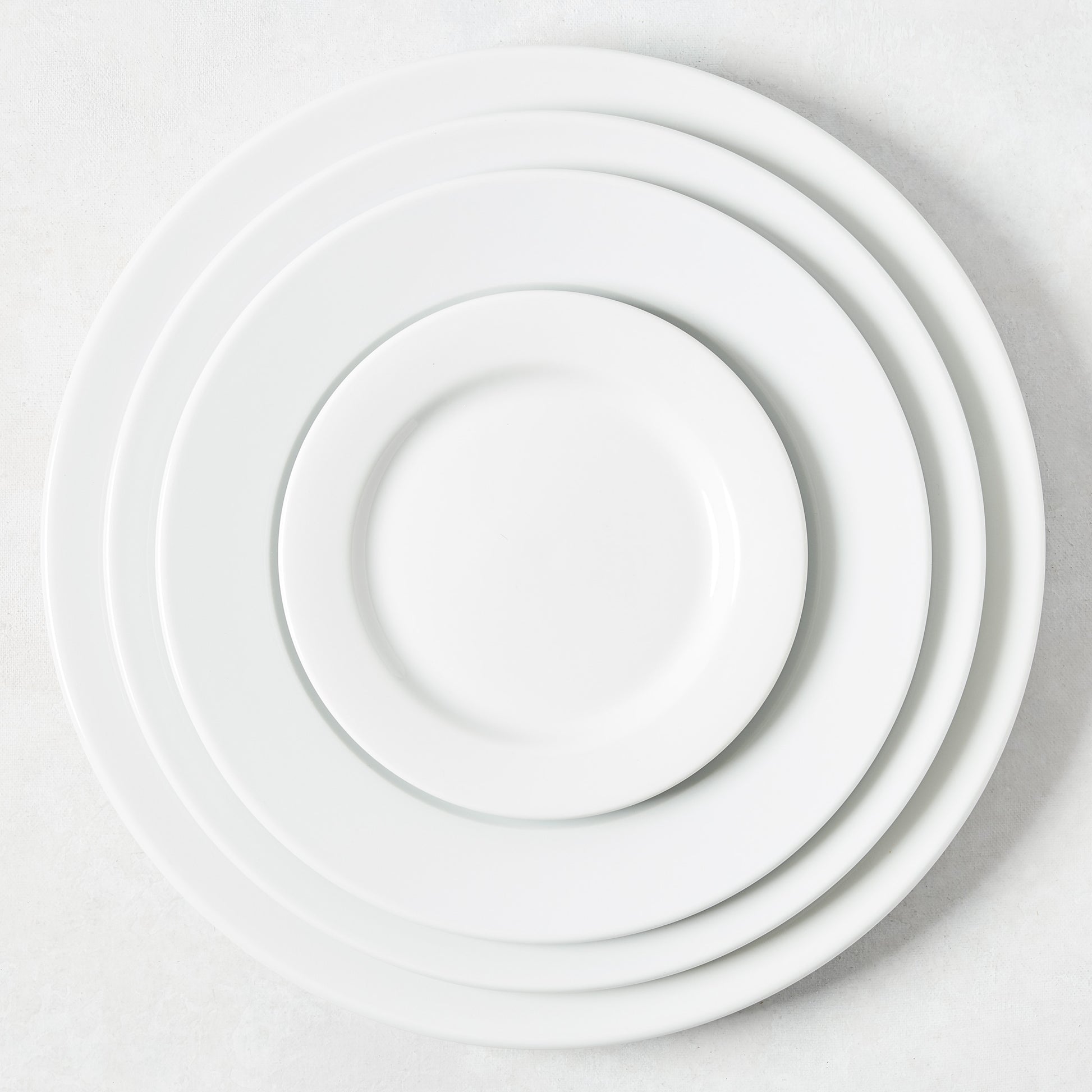 Made in Portugal and covered in Hudson Grace's signature white glaze, the Everyday Porcelain Bread/Appetizer Plate is standard size and stacks perfectly with the other plates in the collection. Its classic rim moves effortlessly from casual weeknight dinners to dressed-up dinner parties.