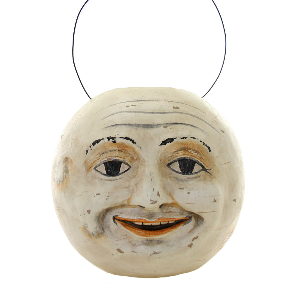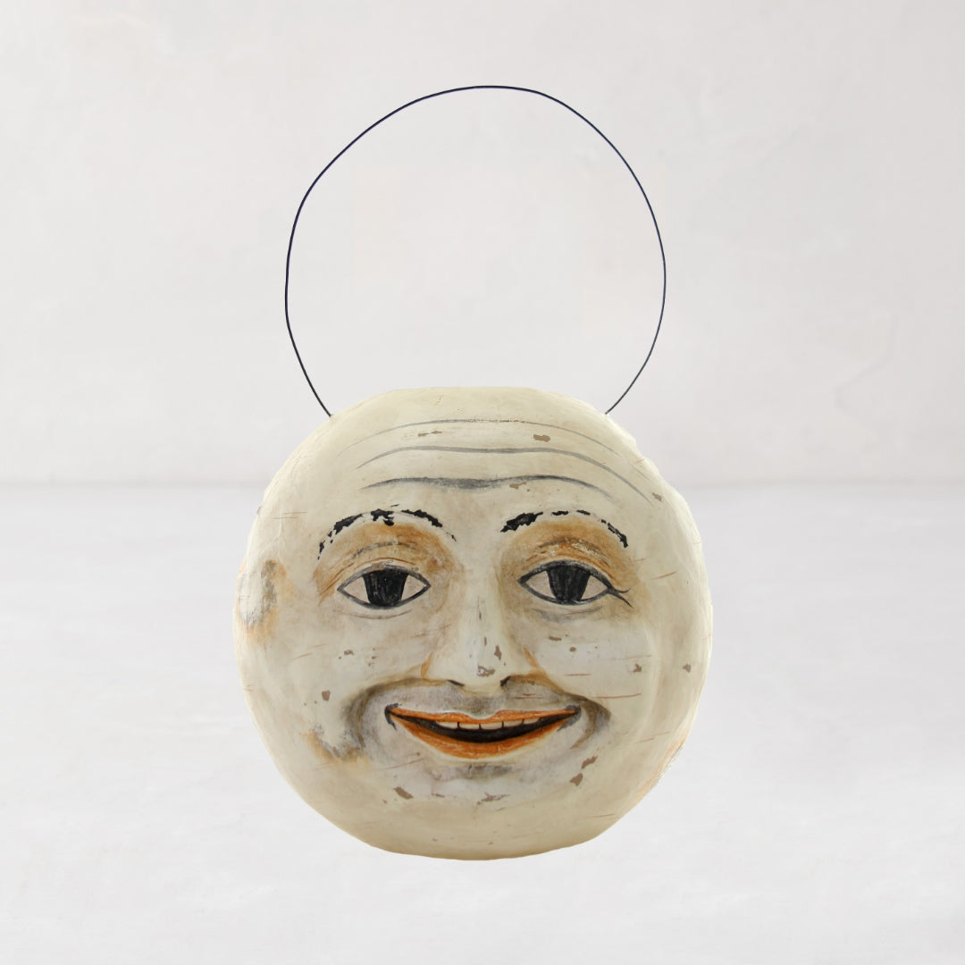 This delightfully wicked Fair Tale Moon Candy Bucket is inspired by vintage Halloween decor and meticulously handcrafted from painted papier-mâché. Each piece is carefully distressed to reflect natural aging, capturing the timeless charm of Halloween's past. Perfect for trick-or-treating or as a spooky-chic centerpiece, this bucket adds a hauntingly nostalgic touch to your decor.
