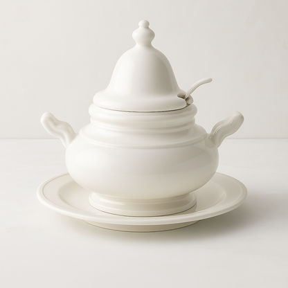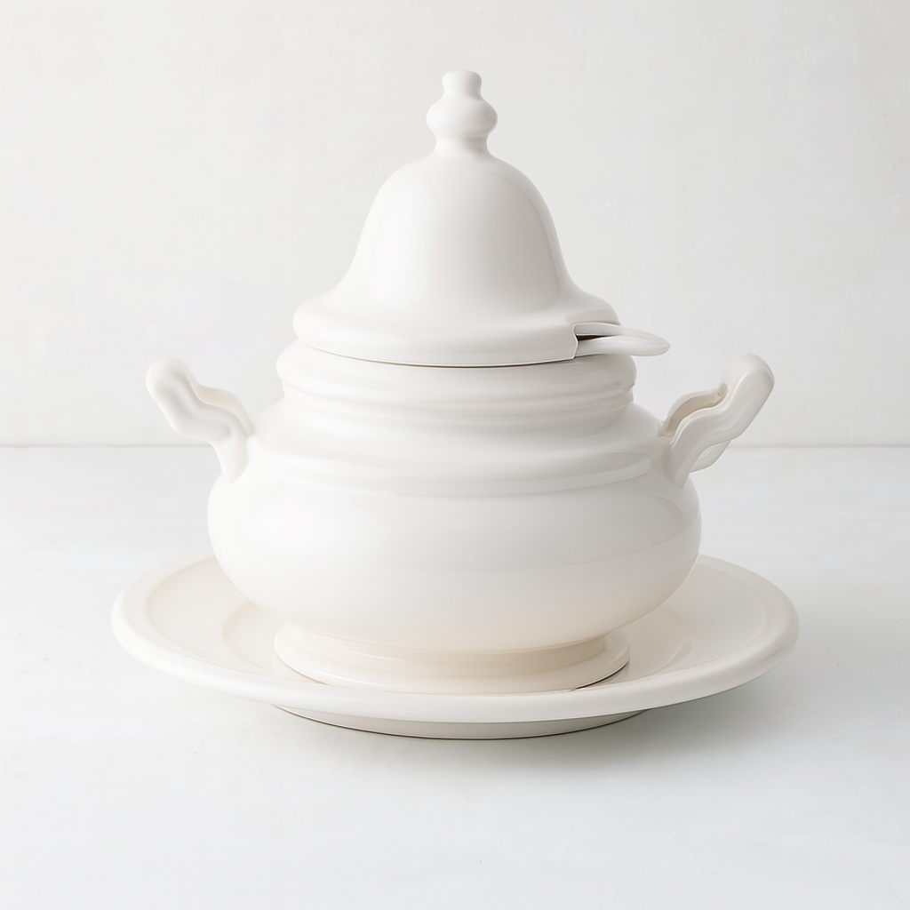 Named after Italy's famous city and cast from an antique mold of the 1930s, this white earthenware Firenze Tureen is at home in both formal and casual settings.
