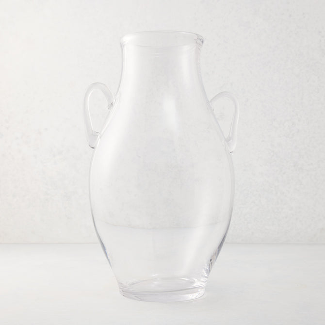 Inspired by antique pottery, the Large Glass Confit Vase is a modern take on the vases used to preserve foods across the French countryside. Bringing a touch of old-world charm, the organic curves and decorative handles create a timeless silhouette, effortlessly combining vintage design with modern style.